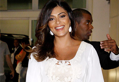Sabrina Sato aguarda voo com suas malas Louis Vuitton