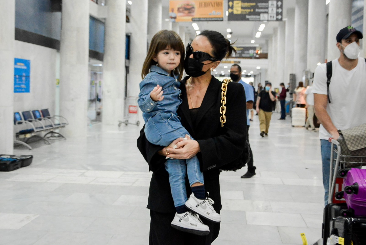 Sabrina Sato e Zoe em aeroporto