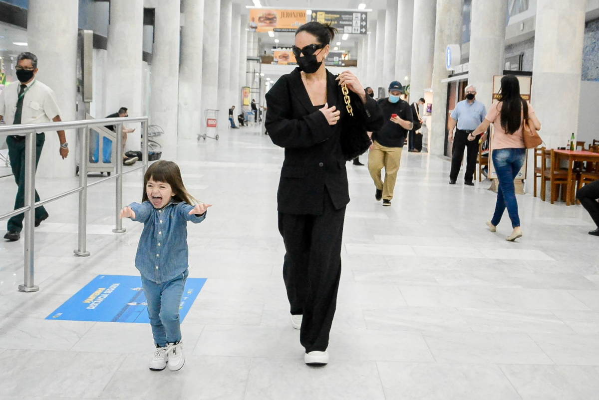 Toda serelepe, Zoe observava tudo e em determinado momento chegou a correr pelo hall do aeroporto. A menina, que é fruto do casamento de Sabrina Sato e Duda Nagle, roubou a cena!