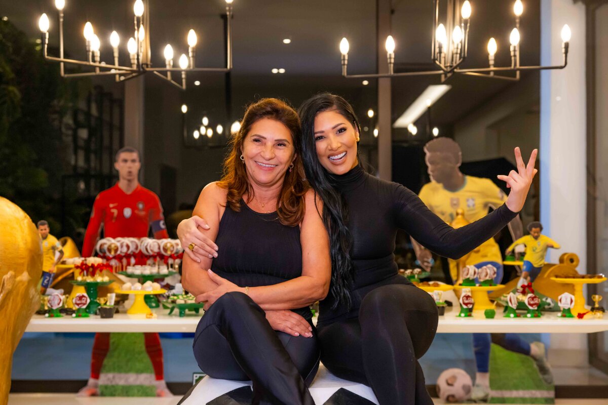 Exibindo a decoração, inspirada na Copa do Mundo e na seleção brasileira, a mãe de Henry e Zaya se empolgou: “Tá na moda o futebol, todo mundo gosta de um futebolzinho”, disse Simone Mendes.