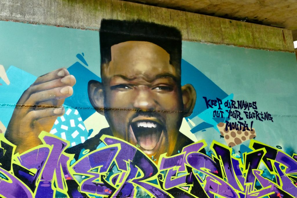 Em Londres, na Inglaterra, grafiteiros pintaram com spray a imagem de Smith debaixo de uma ponte parodiando seu infame tapa no Oscar. A arte com o rosto do ator inclui as palavras ‘mantenha nossos nomes fora da sua boca’, uma referência ao que Will Smith gritou para Chris Rock depois de dar um tapa no comediante.