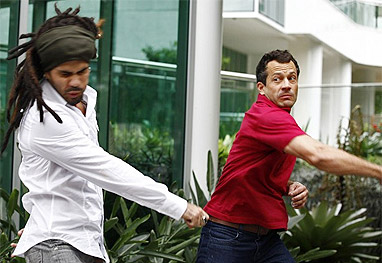 John Travolta e David Beckham juntos em inauguração de loja londrina