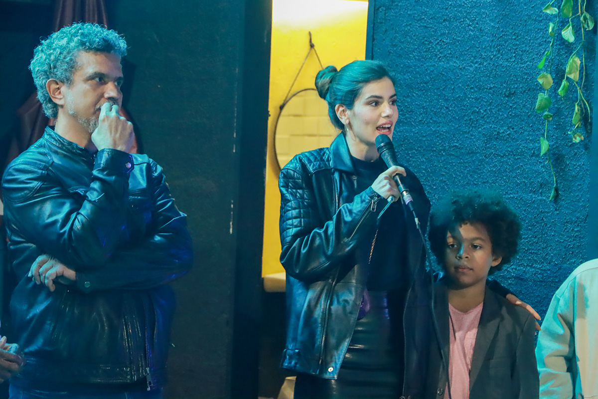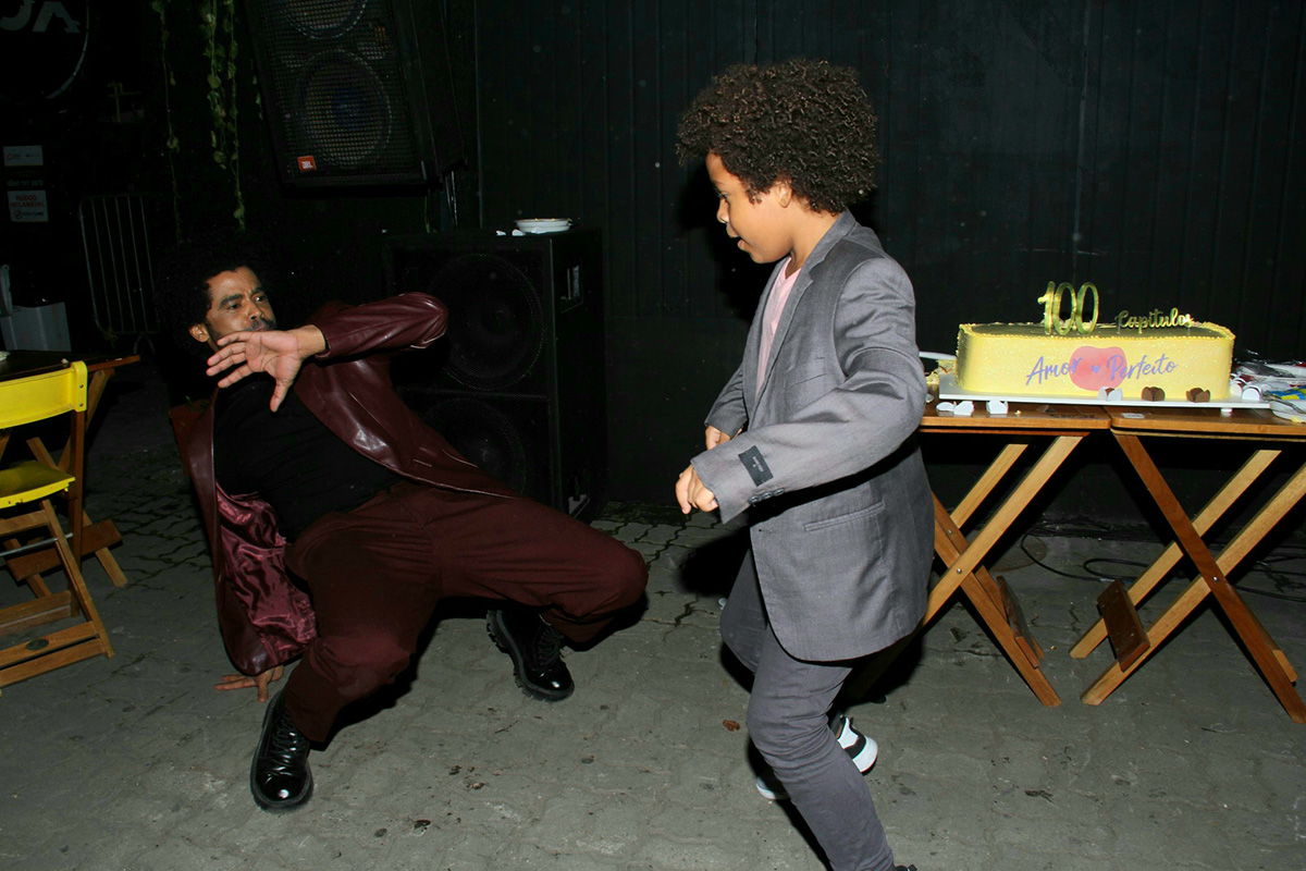 Camila e Diogo encheram Levi de carinho e o ator até mesmo arrasou na dança ao lado do pequeno. Na trama, Marê (Camila Queiroz) e Orlando (Diogo Almeida) são pais de Marcelino (Levi Asaf), mas ainda não sabem disso.