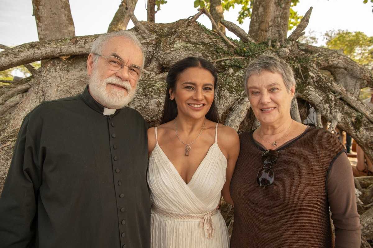 Filó (Dira Paes), Mariana (Selma Egrei) e padre (Caca Amaral) – Foto: TV Globo/Estevam Avellar)