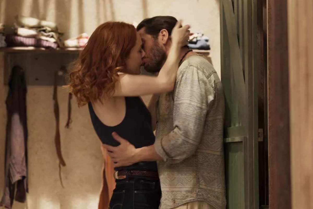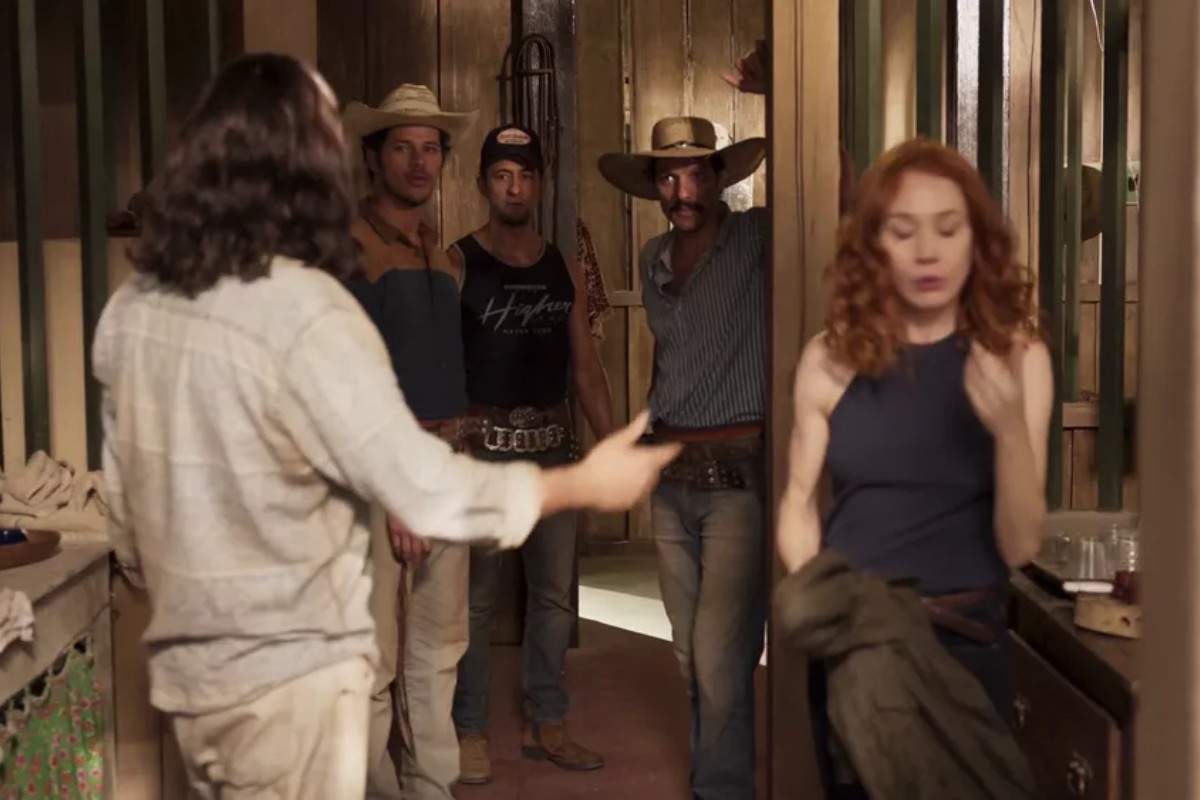 Trazendo um pouco de humor e leveza, o beijo ardente entre eles chegou a ser atrapalhado quando o casal escutou as vozes de José Lucas (Irandhir Santos), Tibério (Guito) e Tadeu (José Loreto) ao fundo, cortando o clima.