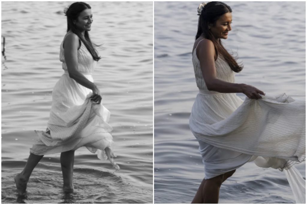 O vestido de Filó contará com três tipos de seda e uma alça bem fina. O traje será mais alinhado ao corpo, com saia rodada, esvoaçante, todo ele confeccionado nos Estúdios Globo.