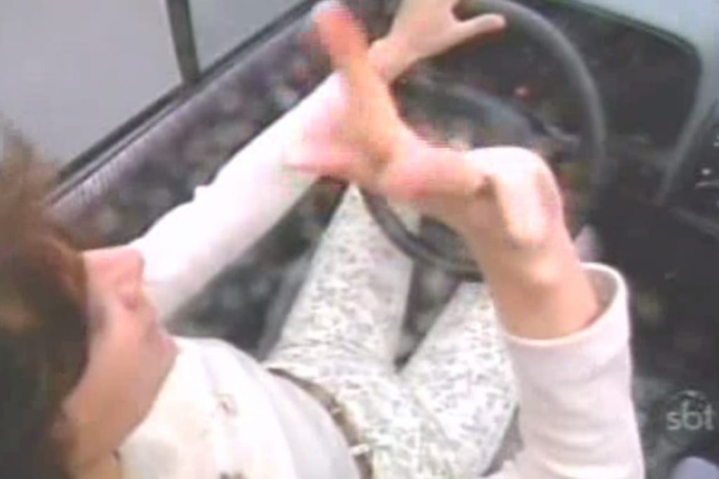 Os dois se olham e sorriem. Os carros passaram a andar na mesma velocidade. Animada com o flerte, ela retribui o sorriso, mas decide acelerar. Mas antes, dá um ‘tchauzinho’ para Jove. “Mas que mulher é essa, bicho?”, se pergunta Jove, todo interessado.