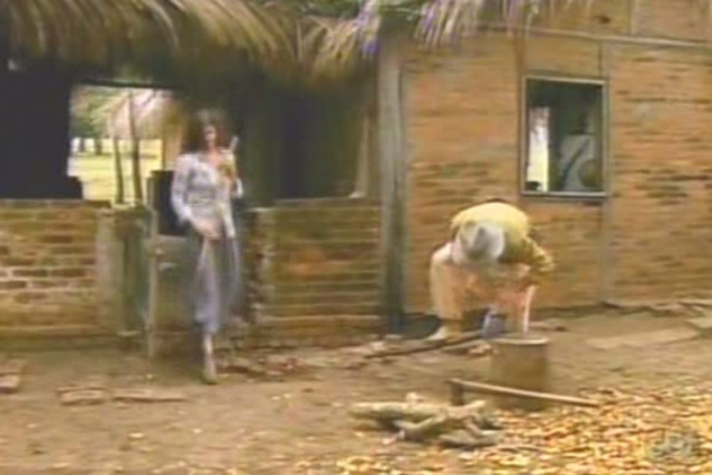 “Ah, vai! Vai, sim. Você é minha mulher”. “Mas eu não vou sair daqui”, responderá Juma. Zé Leôncio começa a se explicar, mas é interrompido pelo filho. “Isso é um assunto meu, pai”. “Aceita a vontade dela, meu irmão”, falará Zé Lucas.