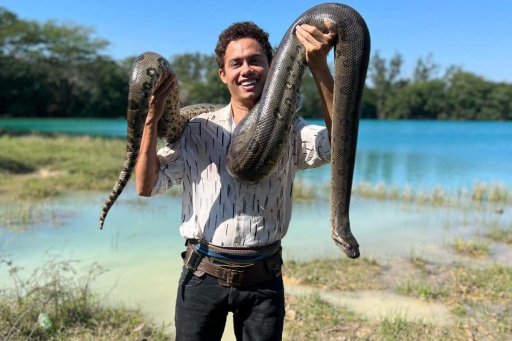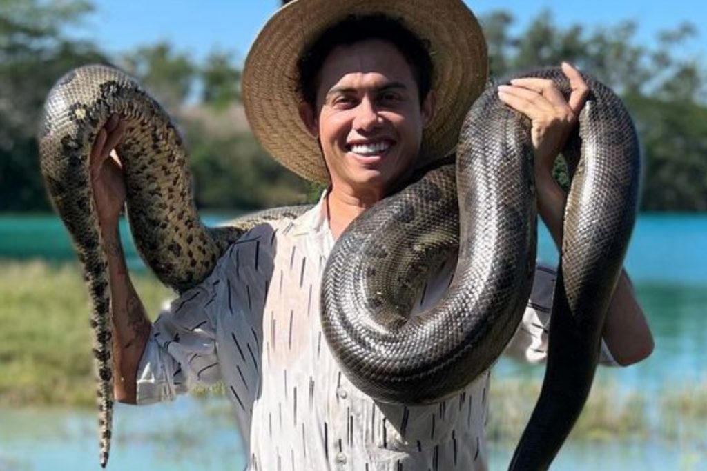 Silvero Pereira já está na contagem regressiva para retornar ao Pantanal. Na tarde desta sexta-feira, 22 de julho, o ator compartilhou uma série de fotos segurando uma enorme cobra. “Zaquieu voltando com fortes amizades”, escreveu na legenda.