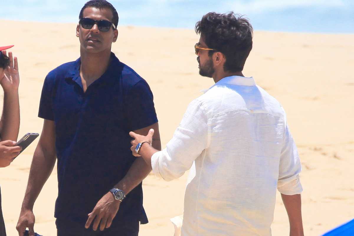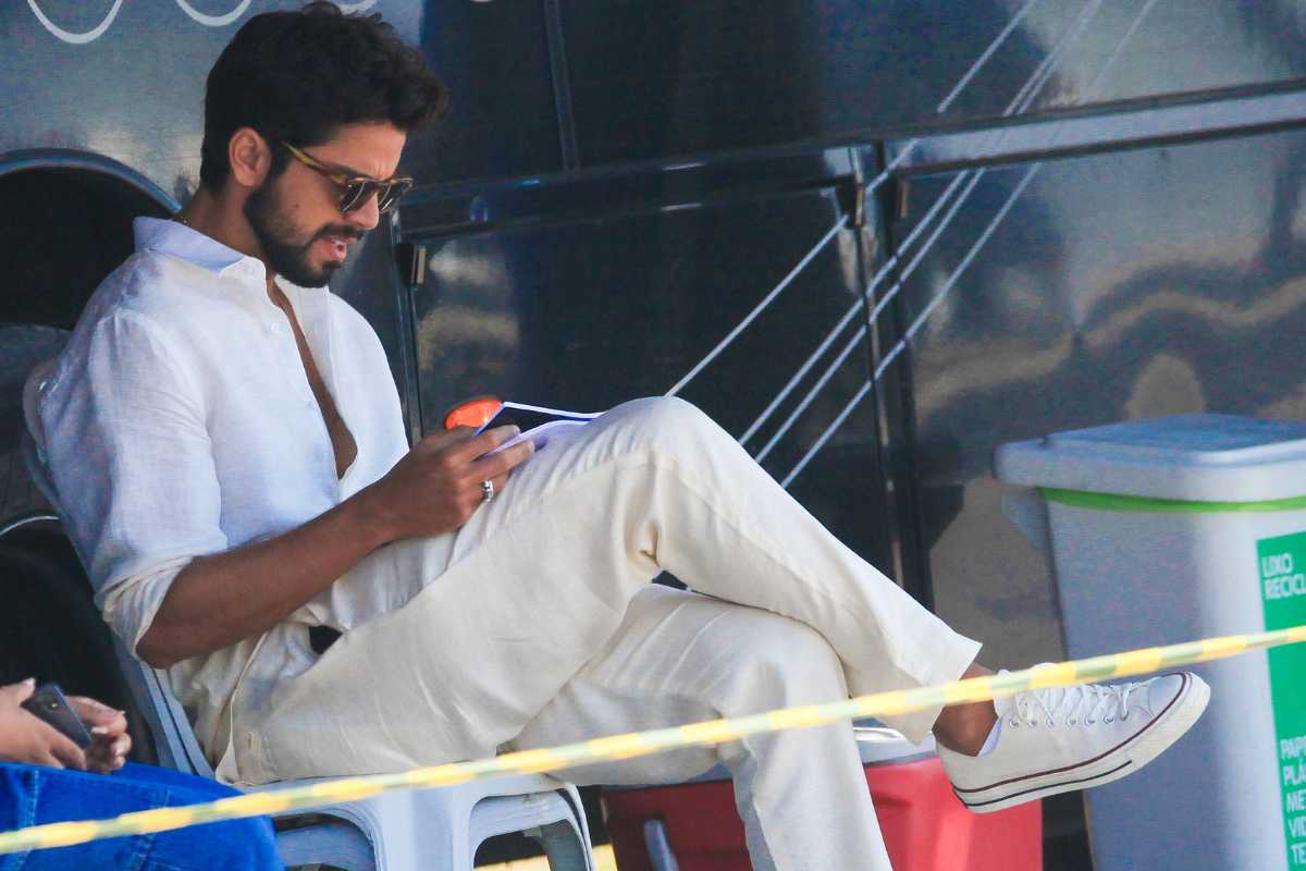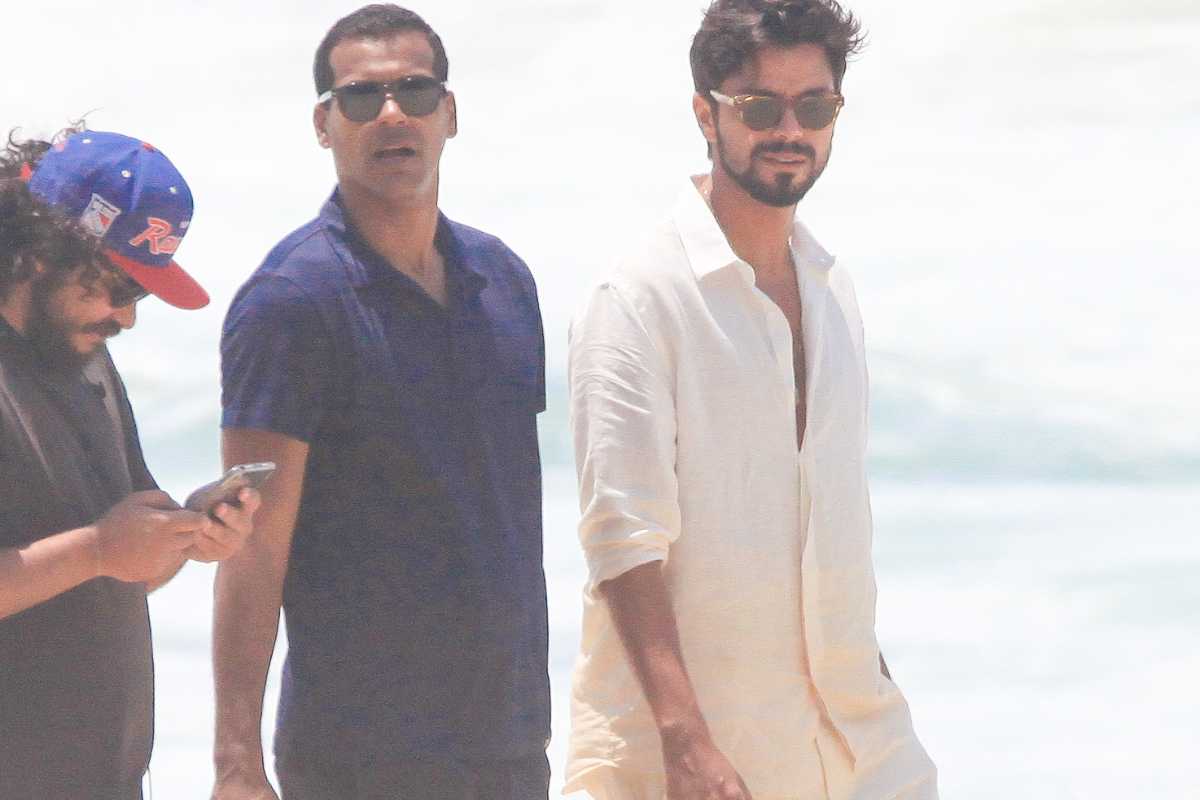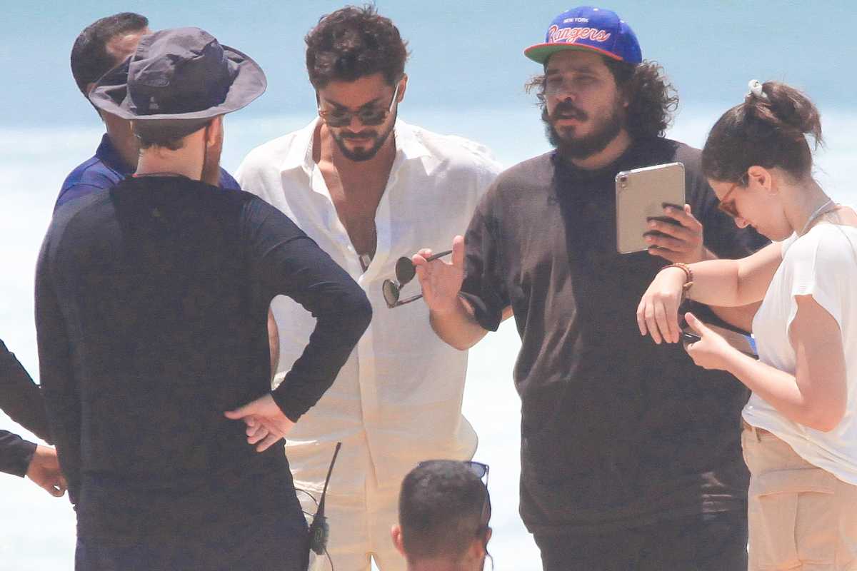 Os dois artistas foram clicados gravando cenas de “Renascer” por um paparazzo na praia de São Conrado, acompanhados por toda uma equipe da atração, fosse em questão de câmeras quanto de roteiro, com o namorado de Agatha Moreira chegando a ler eu script em dado momento.
