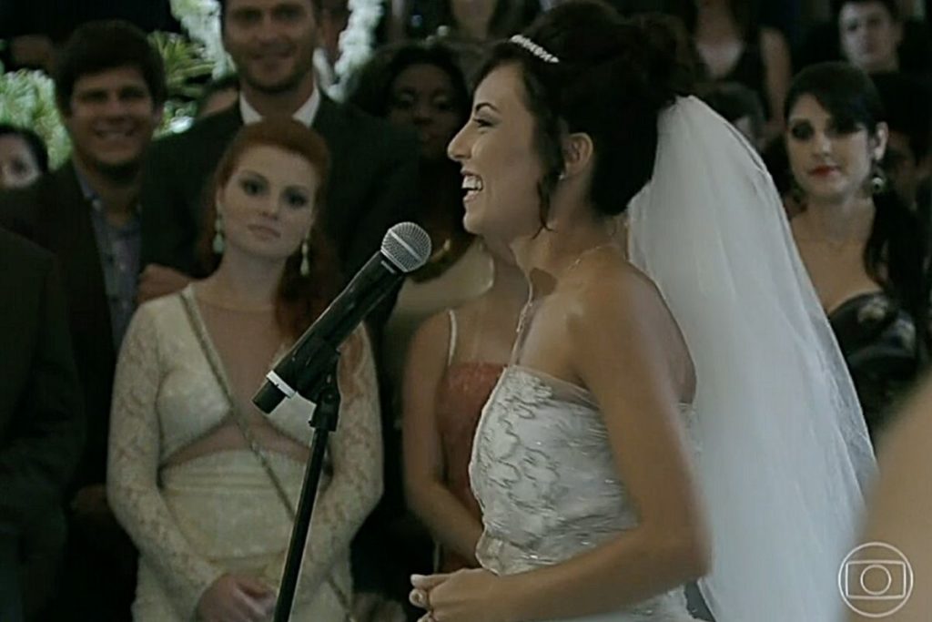 “Eu pensei que hoje seria o dia mais feliz da minha vida, mas fui do céu ao inferno em poucas horas. E no meio do caminho eu pensei: eu não tenho uma coisa que eu queria muito, que é o meu casamento. Mas eu tenho tantas outras coisas, como vocês aqui diante de mim…. É claro que vocês já estão sabendo que o noivo desistiu do casamento”, diz a noiva abandonada que, com lágrimas nos olhos, pede aos convidados para aproveitarem a festa ao seu lado.