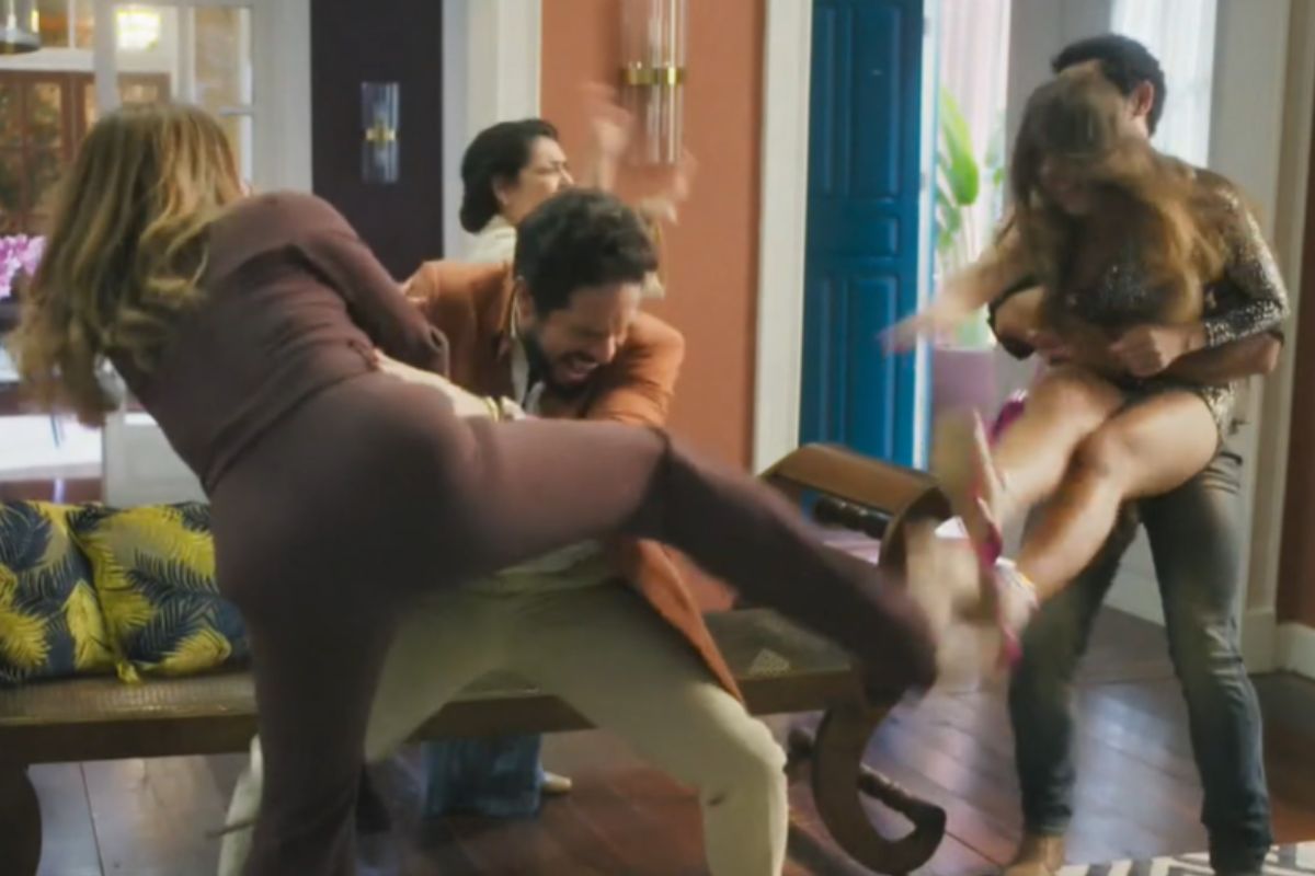 Ramiro e Luigi (Rainer Cadete) tentam separar a dupla, mas a situação esquenta, pois Irene não quer parar de bater e Berenice, quer acertar, pelo menos, um tapinha na megera.