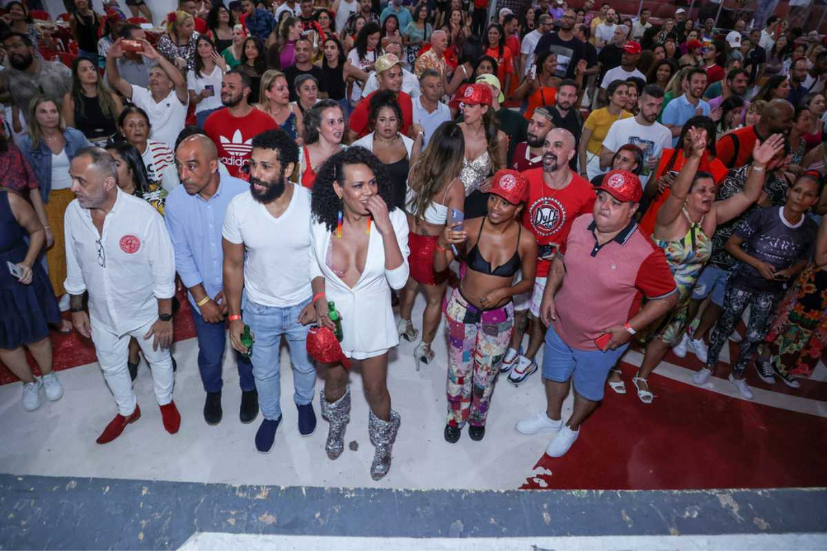 Viviane Araújo recebe elenco de ‘Terra e Paixão’ na quadra do Salgueiro