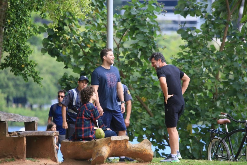 Em breve, o clima entre os personagens de Rodrigo Lombardi e Thiago Fragoso, em “Travessia”, da Globo, deve esquentar. Nesta segunda-feira, 27 de fevereiro, os atores gravaram uma cena de briga aos arredores da Lagoa Rodrigo de Freitas, no Rio de Janeiro.