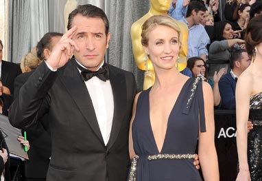 Jean Dujardin passa pelo tapete vermelho acompanhado pela mulher