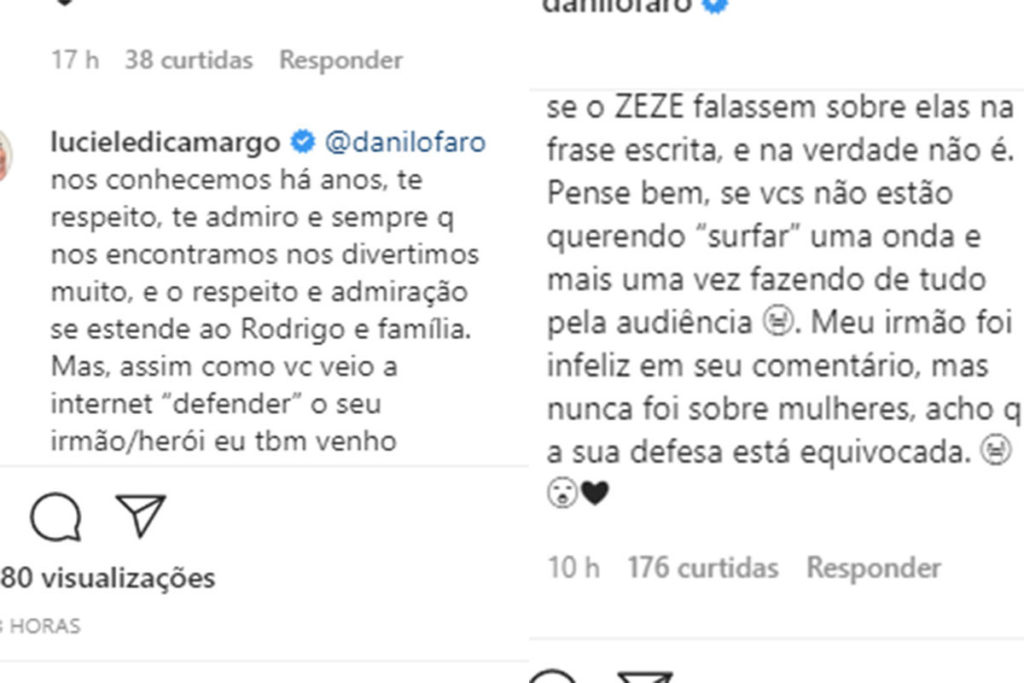 A briga entre Rodrigo Faro e Zezé Di Camargo está tomando uma B-A-I-T-A proporção! Depois de ambos jogarem para fora o que um pensa do outro, por meio dos respectivos stories no Instagram, a “chapa esquentou” ainda mais neste domingo, 4 de julho. A confusão se estendeu para os irmãos do apresentador e do cantor sertanejo: Danilo Faro e Luciele Di Camargo.