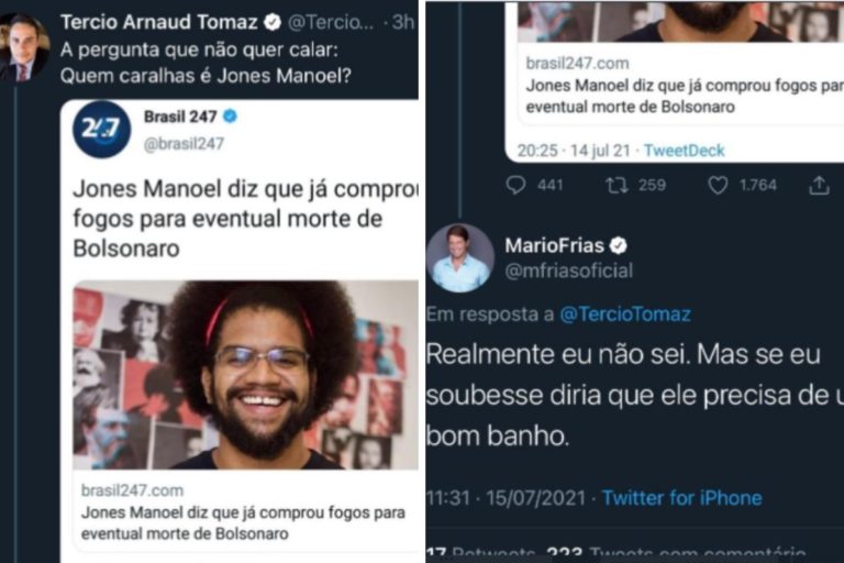 Porém, a confusão não parou por aí e Jones Manoel rebateu Mario Frias, onde disse que ele era um “ex-ator frustrado e atual fascista cometendo um crime de racismo diário”.