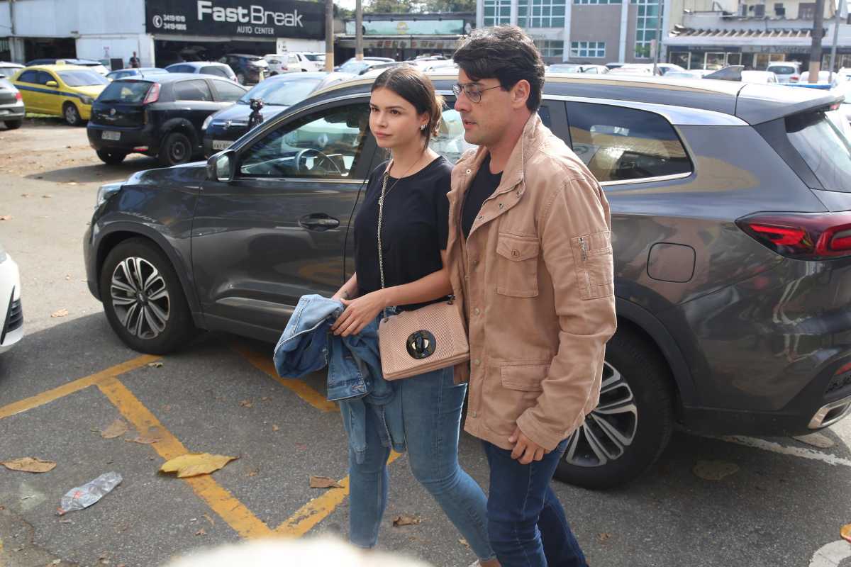 O apresentador do Multishow chegou ao local acompanhado de sua esposa, Sthéfany Vidal, estando trajado de looks casuais, com uma camiseta preta, uma jaqueta grossa marrom e calças jeans, enquanto a esposa estava com visual similar, mas com blusa jeans nas mãos.