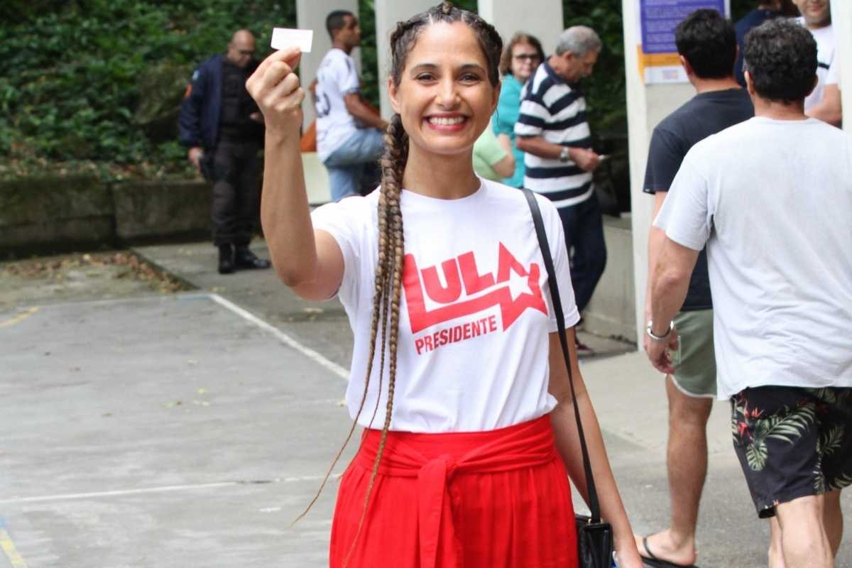 Glória Pires, Taís Araújo e Lázaro Ramos votaram em um colégio estadual na Zona Oeste da capital carioca. Fátima Bernardes também já votou, posando com uma camiseta branca com detalhes vermelhos. Bruna Marquezine foi mais uma deixar seu voto, posando com a sãos fazendo o “L”.