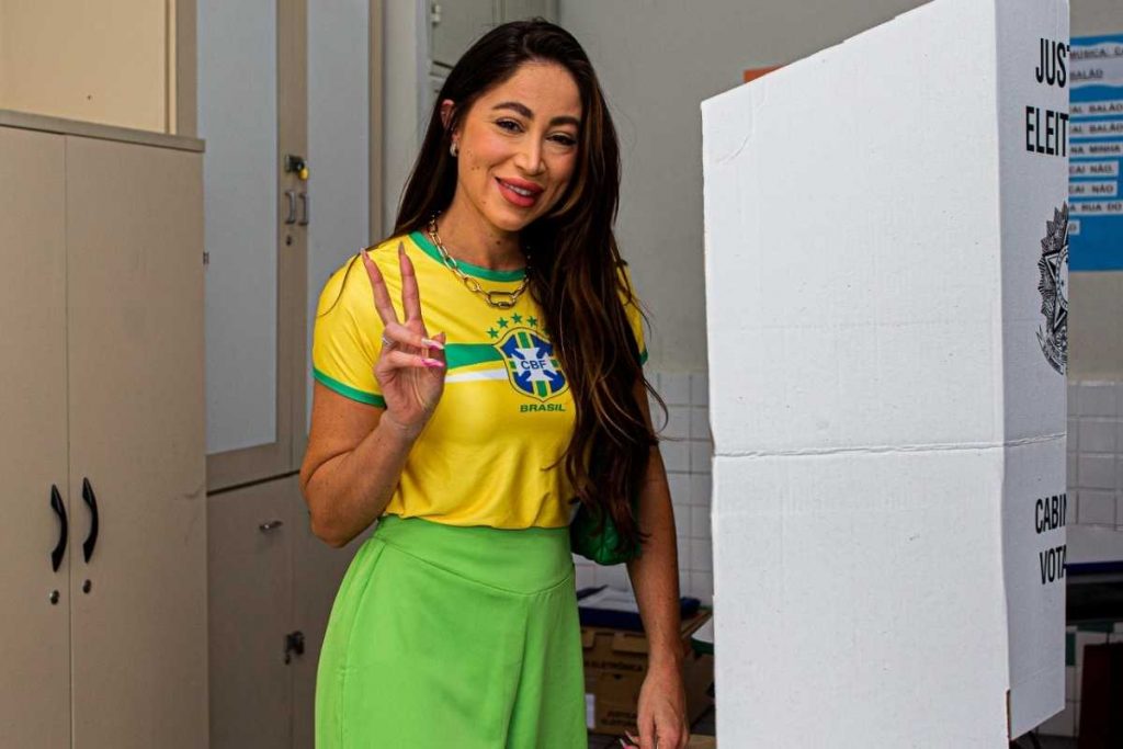 Em São Paulo, Luísa Sonza votou em um colégio no bairro do Morumbi, com uma camiseta branca e casaco vermelho, chegando a fazer o “L”. Já Karina Bacchi votou de camiseta amarela e blusa verde, fazendo “2” com os dedos nas duas mãos. Marcus Buaiz, ex de Wanessa Camargo, votou em Alphaville, na região metropolitana da capital paulistana.