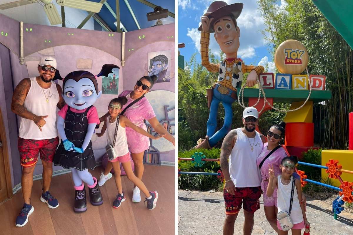 Porém, apesar de tudo, Moranguinho e Naldo Benny curtem seus momentos familiares e de casal, como quando levaram a filha Victoria para curtir as férias nos parques da Disney, localizados em Orlando, na Flórida, Estados Unidos. Nesta segunda-feira, 22 de agosto, a família aproveitou para visitar o parque Hollywood Studios, cheio de atrações divertidas e brinquedos para embarcar na experiência mágica de estar na terra do Mickey Mouse.