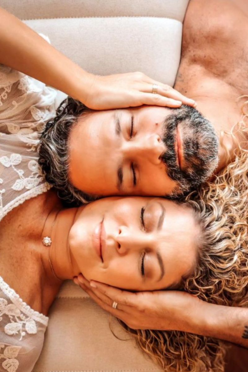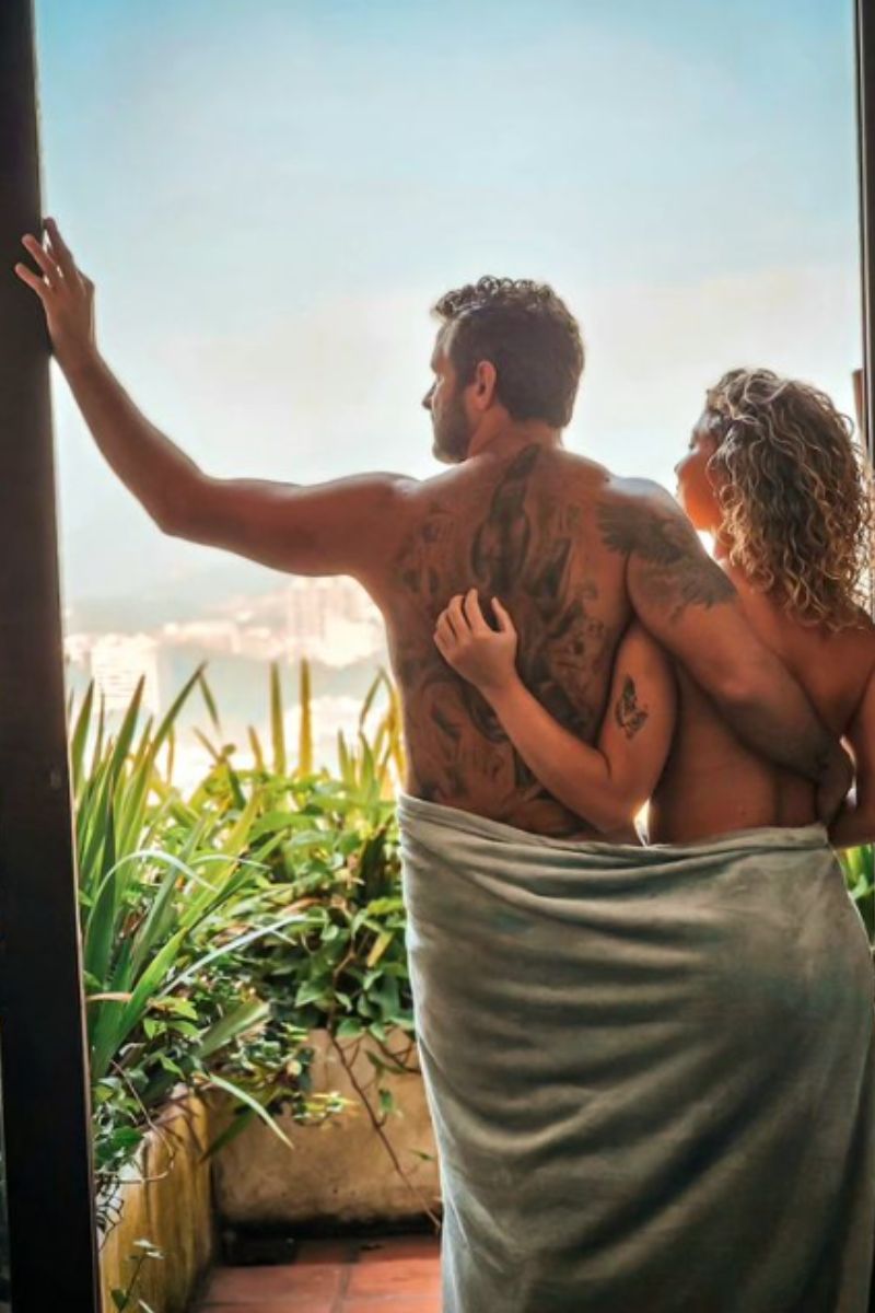 Belíssimos, os dois posaram nus, em algumas imagens enrolados em um cobertor, brincando na cama e fazendo carinho na varanda.