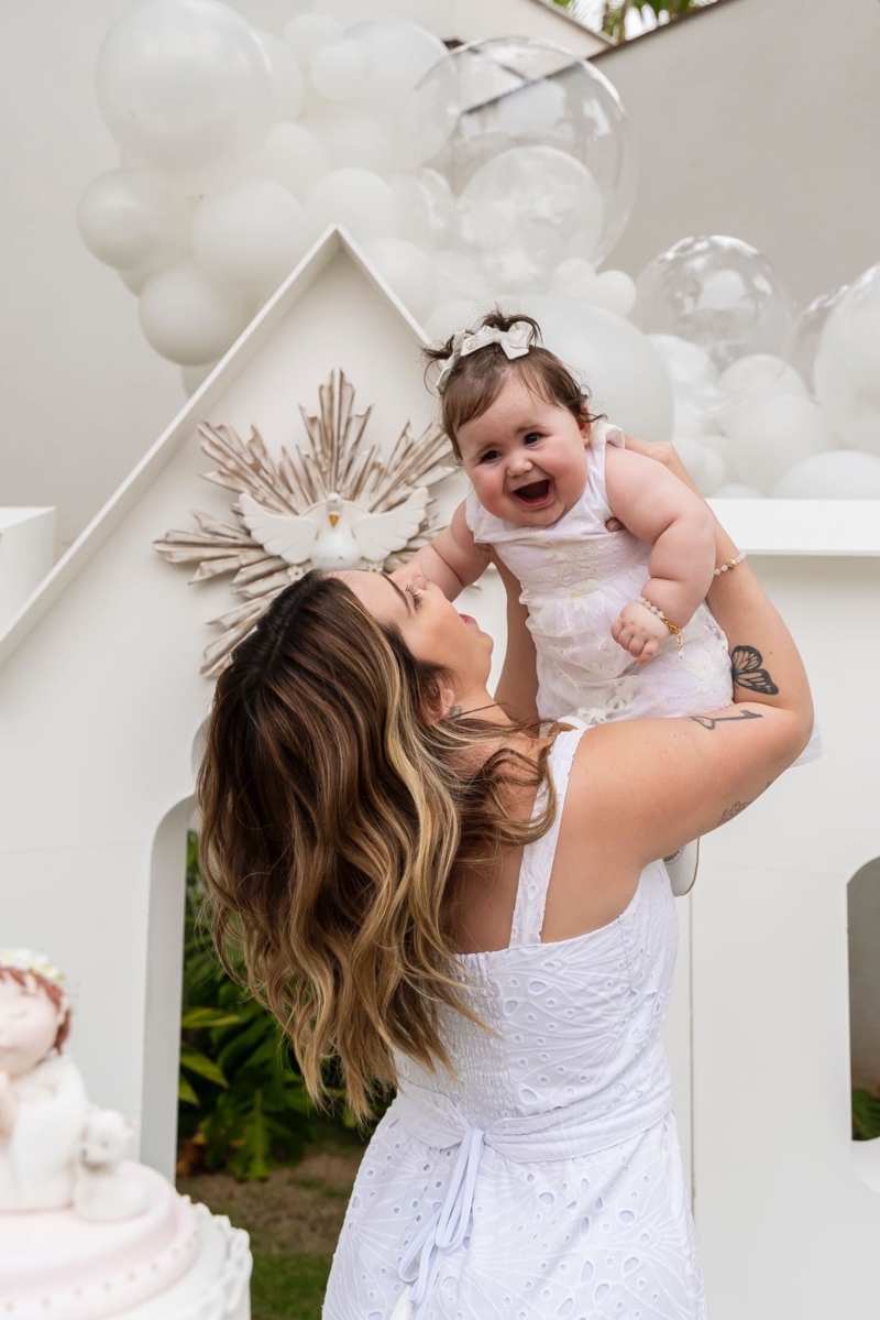 Viih Tube ressaltou a felicidade de vivenciar o momento ao lado da família: “Hoje foi um dia muito especial! Eu e o Eli sabemos que toda nossa história foi escrita pelas suas mãos, que tudo tem você! Não temos dúvidas disso! E nossa filha também é sua, Deus. Sabemos que ela veio para trazer muitas benções e sempre ressaltaremos para ela o quanto você é bom, é a base de tudo!”, escreveu ela.
