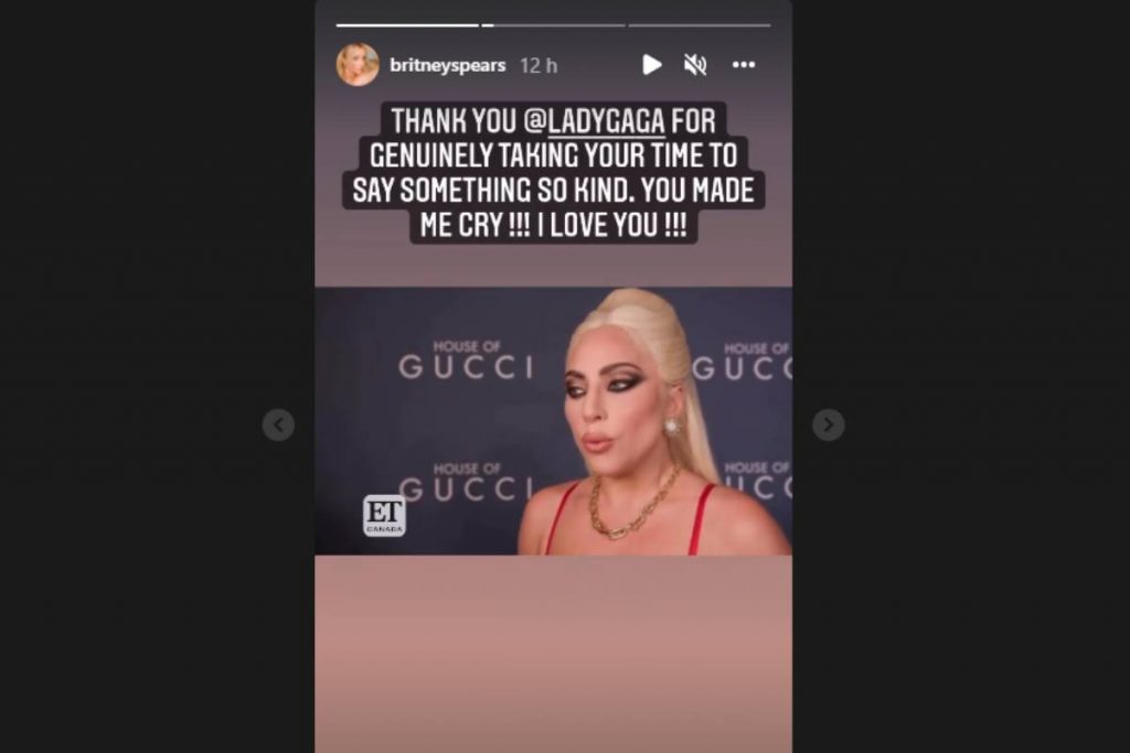 “Obrigada, Lady Gaga, por genuinamente tirar seu tempo para dizer algo tão gentil. Você me fez chorar! Eu te amo!”, escreveu Britney, agradecendo.