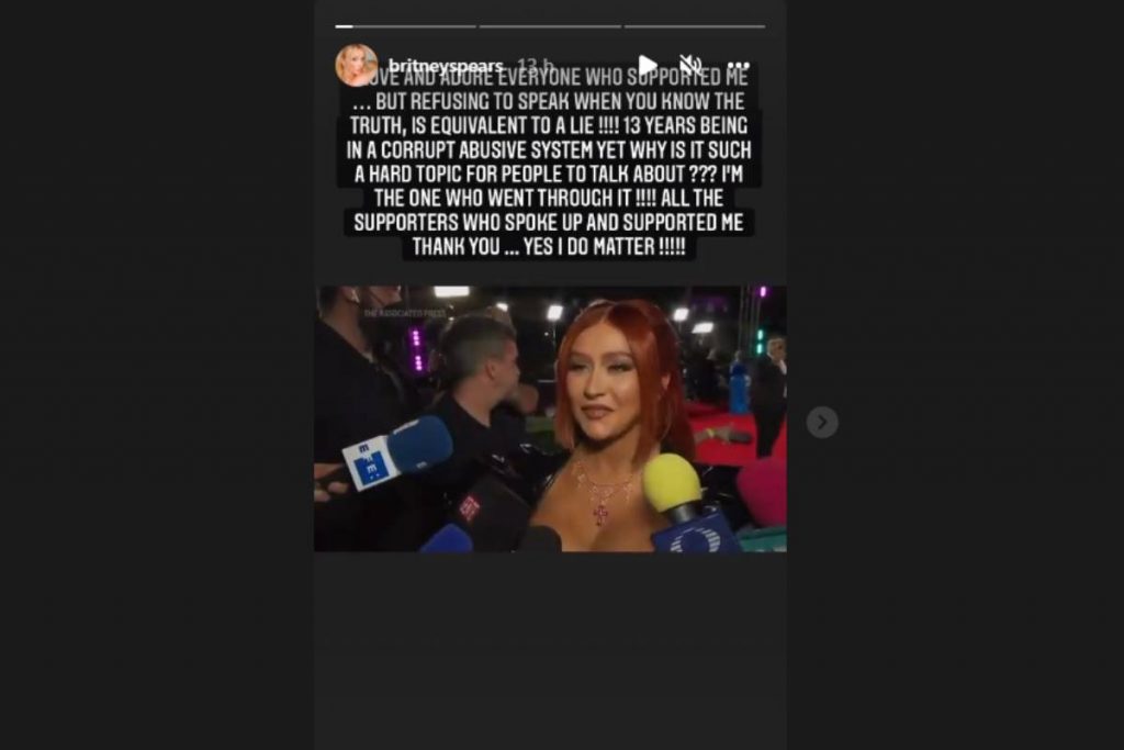 Por meio do stories de seu perfil oficial no Instagram, Britney Spears criticou a atitude da colega de profissão, ressaltando que a fala evasiva pode denunciar um apoio às atitudes de seu pai por tantos anos.