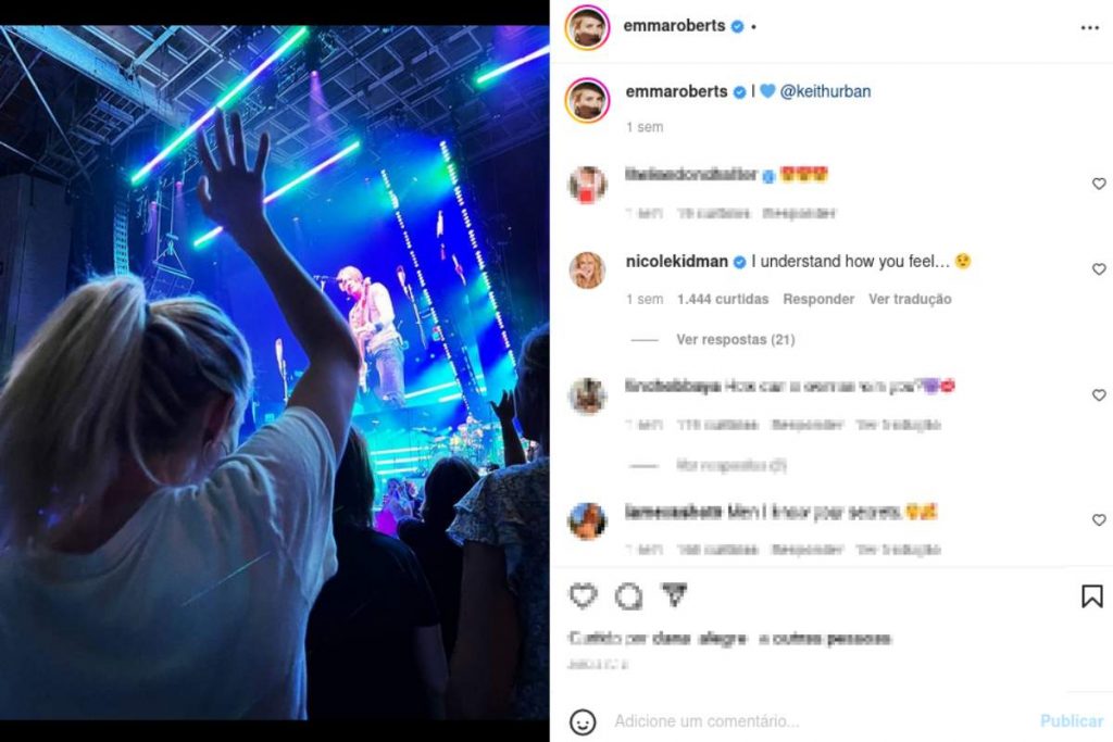 Dias depois de Nicole Kidman e o marido Keith Urban comemorarem 16 anos juntos nas redes sociais, a atriz reagiu ao comentário que uma famosa fez sobre o cantor, durante um show dele. Emma Roberts demonstrou ser fã de carteirinha do músico country.