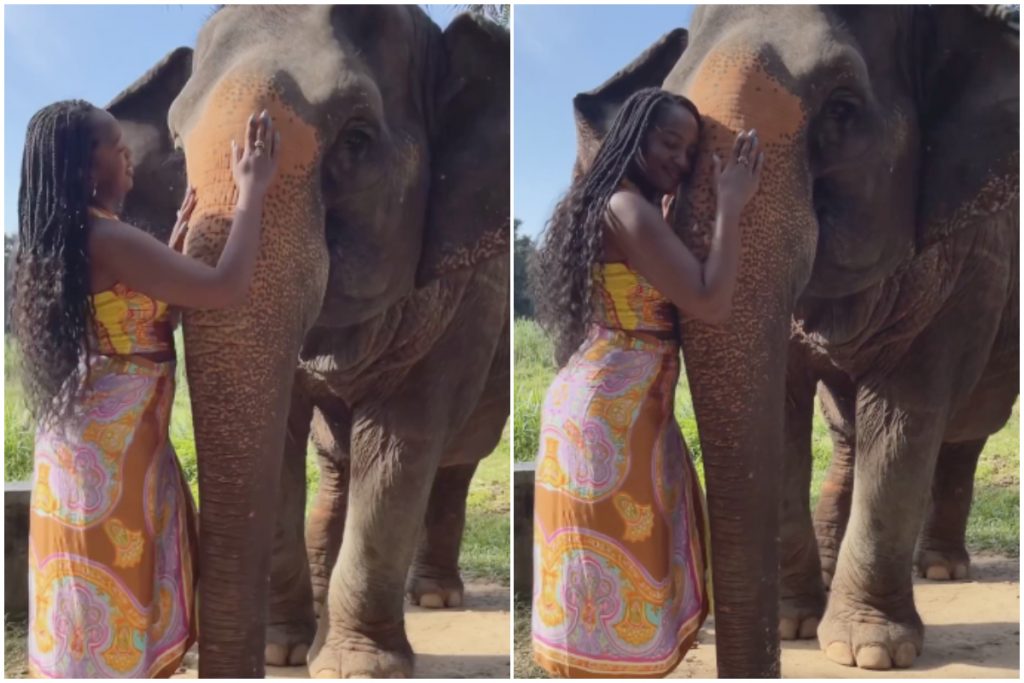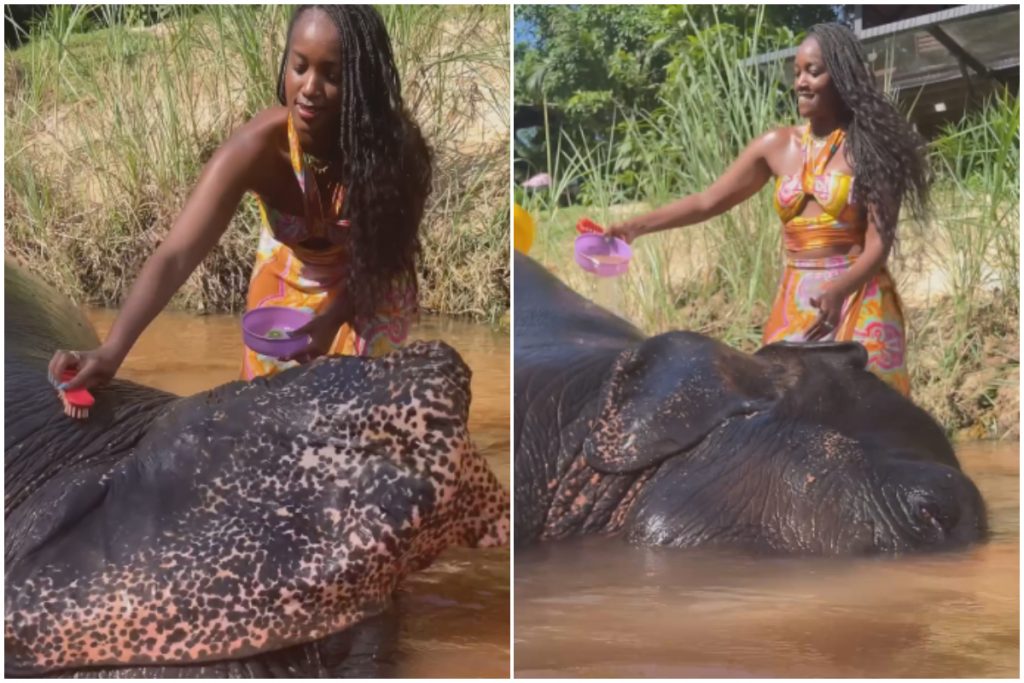 Lá, ela alimentou uma elefanta de 43 anos. “Essas rainhas foram resgatadas da exploração e trabalhos turísticos. Elas não conseguem mais se adaptar a natureza e por isso vivem em santuários, sendo tratadas como elas merecem. Que privilégio passar o dia com elas”, escreveu.