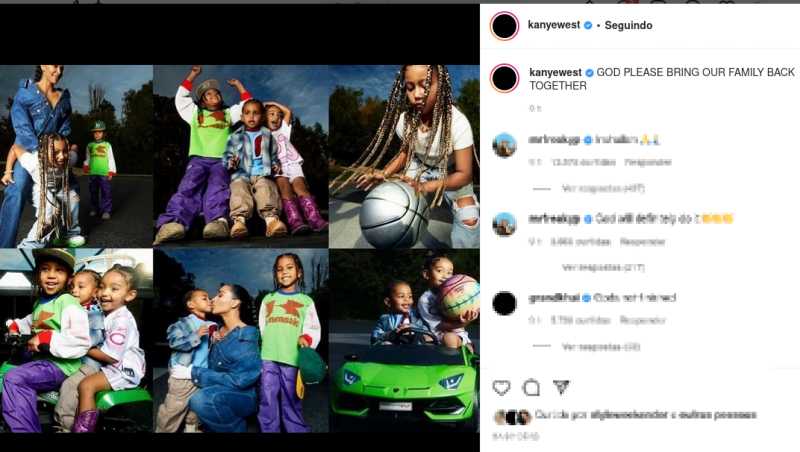 Kim compartilhou em seu Instagram imagens da sessão de fotos com os filhos para a revista, e Kanye, em um ato de desespero, republicou as imagens, implorando a Deus que o ajude.