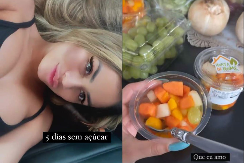 Além disso, a loira compartilhou uma foto e escreveu: “Cinco dias sem açúcar”.