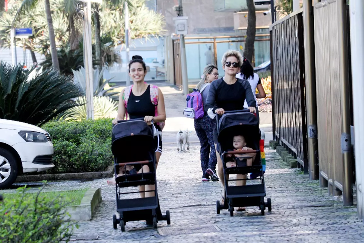 As duas curtiram a orla carioca acompanhadas pelas filhas gêmeas Kim e Tiê, de nove meses. As bebês estavam bem relaxadas no carrinho.