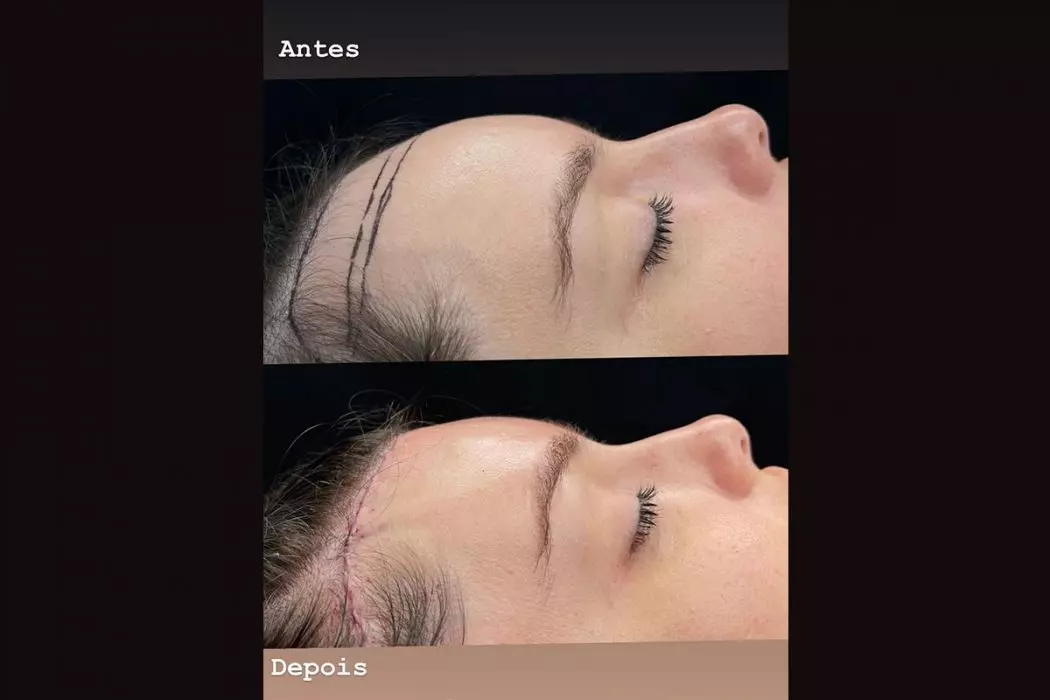 Em seguida, a influencer respondeu algumas dúvidas dos seguidores e contou que fez o procedimento para se sentir melhor com a aparência. “Vou ficar uma semana com essa faixa, depois tiro e uso só para dormir. A única coisa que sinto é, tipo, latejando a cabeça às vezes. Mas bem mais tranquilo do que imaginei. Eu sofria com minha testa. Essa era minha insegurança. É triste eu vir pedir desculpa pela minha insegurança”, disse.