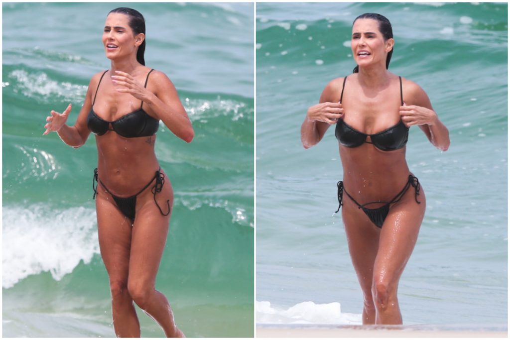 Deborah Secco rouba a cena em praia ao exibir bumbum empinado