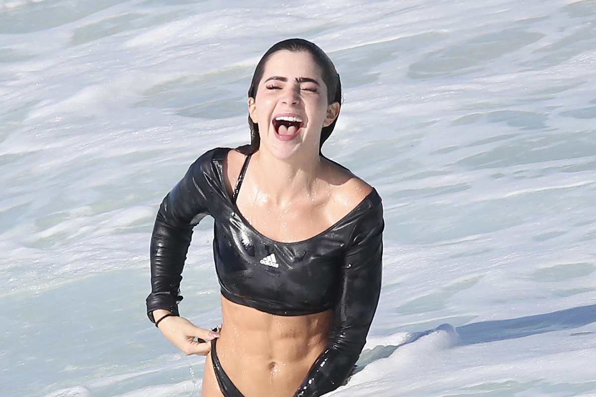 Jade Picon se refrescou com um delicioso banho de mar – Foto: Fabrício Pioyani/AgNews