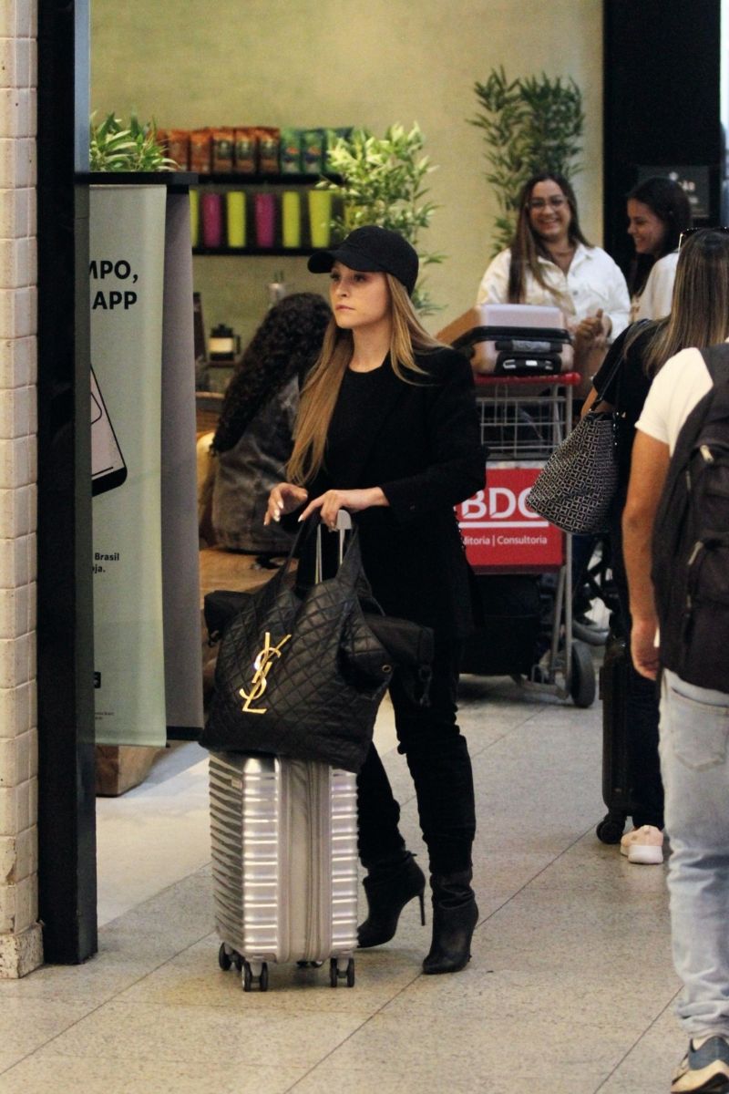 Depois de anunciar a separação de Felipe Becari, Carla Diaz foi fotografada no aeroporto Santos Dumont, no Rio de Janeiro, nesta quarta-feira, 26 de julho. A atriz manteve a postura séria e estava vestida toda de preto, com um boné cobrindo parte do rosto.