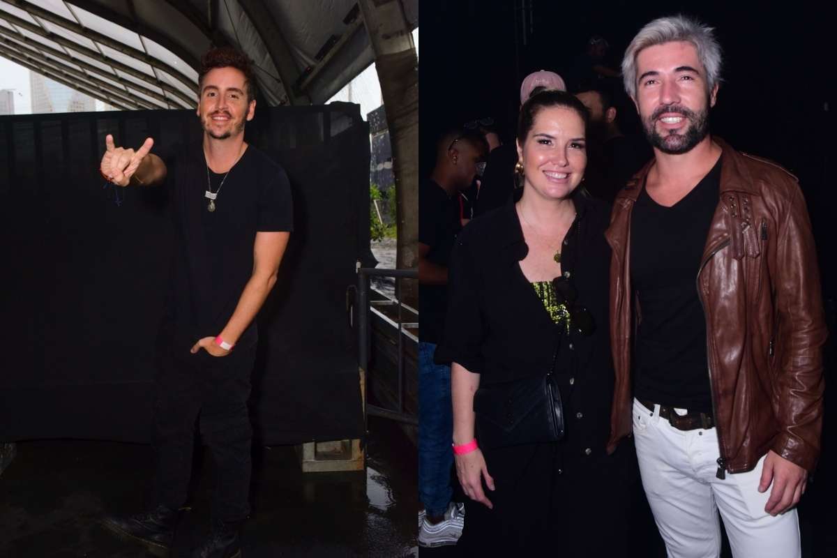 Casal aproveitou apresentação atrás do palco, com Sarah Andrade no grupo de amigos. Foto: Leo Franco/AgNews