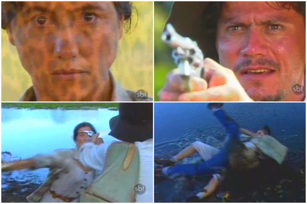 Assim como o nascimento de Juma (Cristiana Oliveira), a morte de Maria Marruá Cássia Kis) é também uma das cenas emblemáticas da primeira fase de “Pantanal”. O desfecho se dá quando a família Marruá ainda morava no Paraná. Maria e Gil (José Dumont) se envolvem em uma briga com poderosos fazendeiros e perdem suas terras. No conflito, o marido de Maria comete um assassinato, e todos ainda sofrem com a morte do três filhos.