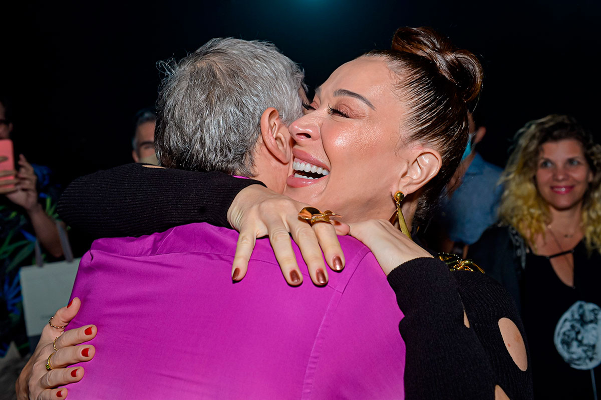 As atrizes fizeram questão de posar ao lado do ator para diversas fotos e Claudia encheu Reynaldo de carinho, com direito a muitos abraços.