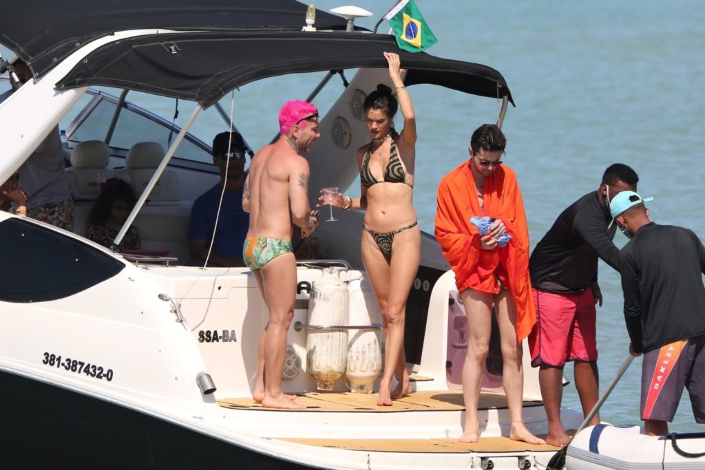 Alessandra Ambrósio exibe o corpão em passeio de lancha com famosos