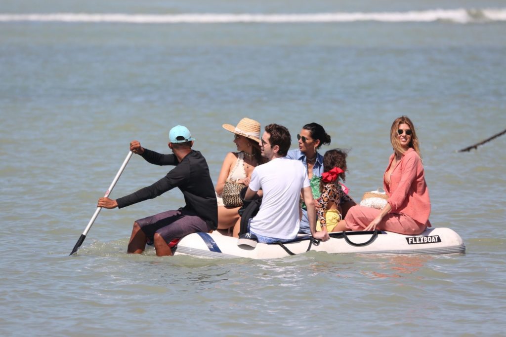 No final de semana, Alessandra Ambrósio, que está curtindo férias no Brasil, fugiu do frio da região sul do país e partiu para a Bahia. Junto com a modelo Fernanda Motta e o apresentador Matheus Mazzafera, ela fez um passeio de lancha pela Praia do Espelho, em Trancoso.