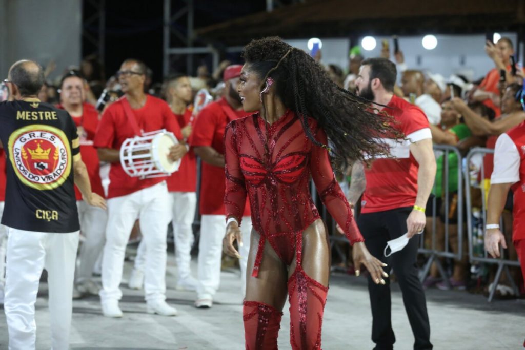Carnaval 2022: Erika Januza exibe corpão à frente da bateria da Viradouro