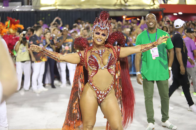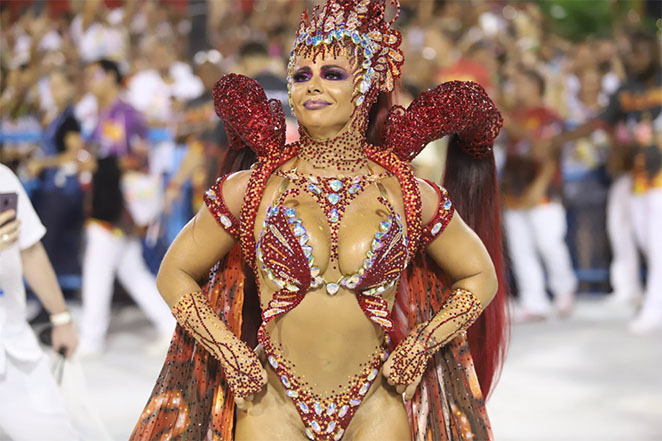 Mais tranquila, Viviane Araújo reina no desfile das campeãs