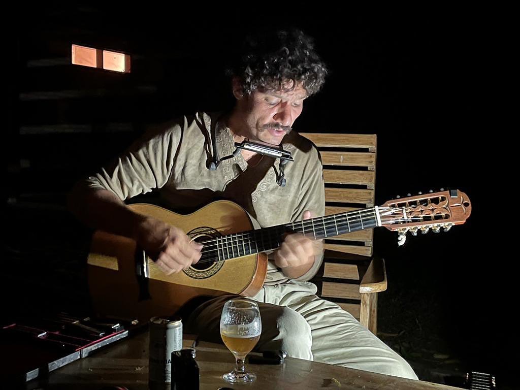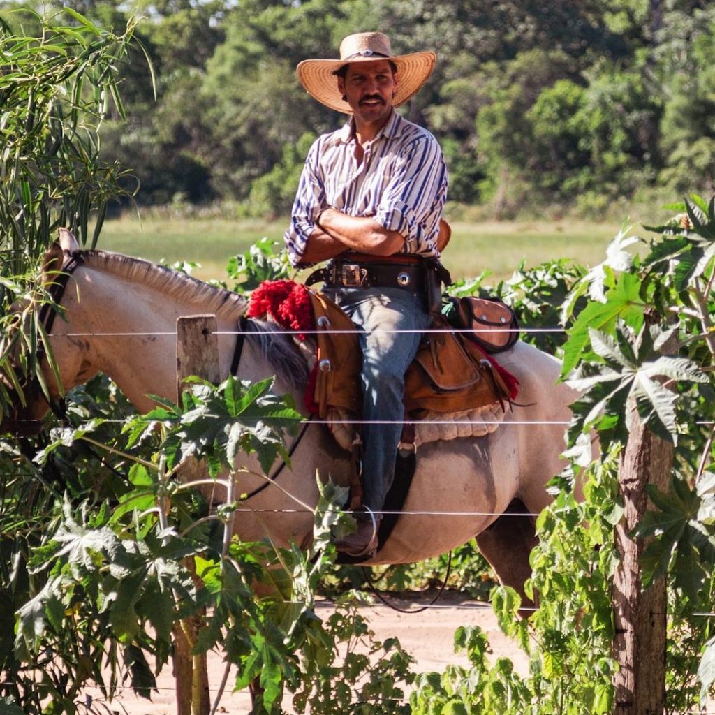 Guito: “Isso acaba sempre me remetendo ao campo mais técnico da agronomia. Gosto muito de observar os biomas brasileiros, sou apaixonado pela natureza. E o Pantanal foi uma simbiose entre homem, produção e natureza que culminou muito bem. É um tema que tem 250 anos. Então, gosto muito de observar esse lado técnico, e inclusive agora que a gente tá deixando o Pantanal, acho que o maior legado que a gente pode deixar para uma comunidade é a autossuficiência. Logo, meu objetivo é fomentar o turismo de cavalgadas, que eu acho que calha muito bem com aquela região – se você faz um passeio a cavalo de três a quatro dias, você vai conseguir enxergar uma infinidade de bichos, entender esse ecossistema, entrar nas matas, comer comidas maravilhosas típicas, além dessa interação com cavalos e o homem, que é uma terapia que todo mundo deveria passar por isso pelo menos uma vez na vida. A gente se reencontra muito com a natureza nossa e a mãe Terra, podemos dizer assim, que ali a gente acaba estando inserido num ecossistema maior que o nosso. Ali, saímos da bolha urbana e voltamos para a nossa essência. Então, você se vê no meio dos bichos, araras, veados, cervos, javalis, antas, capivaras, jacarés, onças… então é bem mais fácil a observação à cavalo, e é um turismo que acho que vale a pena fomentar naquela região.”