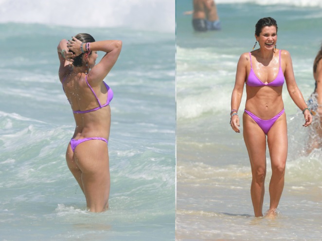 Flávia Alessandra sobe a temperatura da praia de biquíni