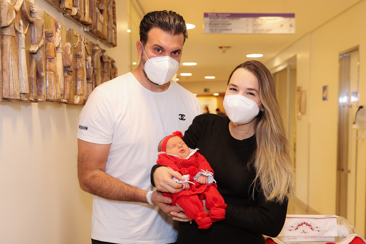 As primeiras fotos da menininha na maternidade foram postadas nas redes sociais da artista sertaneja e ela aparece também ao lado do marido, Fábio Elias.