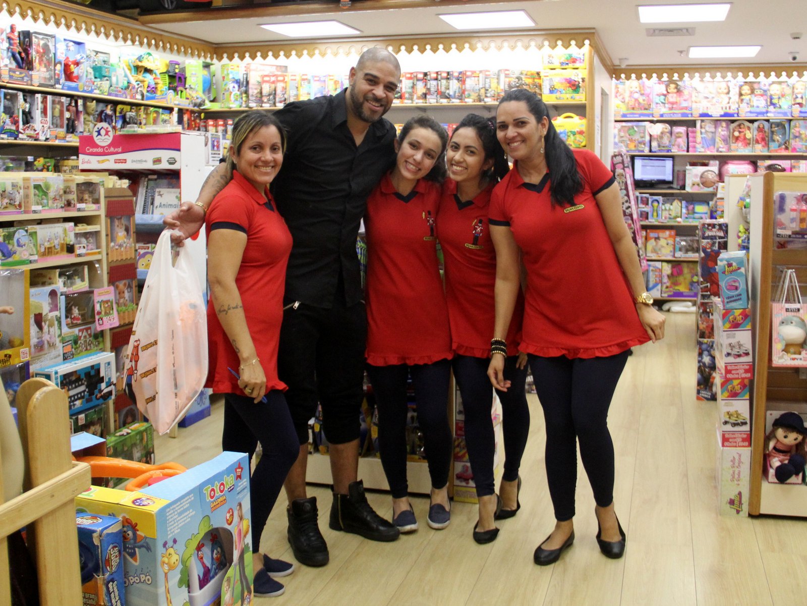 Fofo! Na última quinta-feira (18), Adriano Imperador foi flagrado comprando diversos ursinhos em uma loja de brinquedos, em um shopping no Rio de Janeiro. Com o mesmo bom humor de sempre, o carioca sorriu para ás camêras e posou ao lado de fãs que trabaçham no estabelecimento.