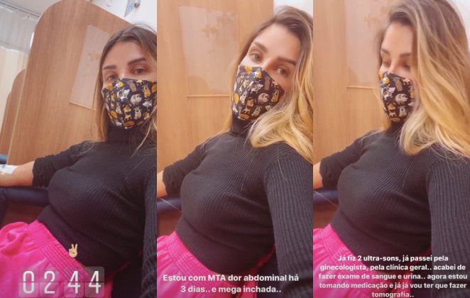 "Já fiz dois exames de ultrassom para a gente descartar o que pode ser. Não é nada ginecológico, a ultra está ok. Agora, é aguardar os exames de sangue e urina ficarem prontos. Então vou fazer tomografia", explicou ela.